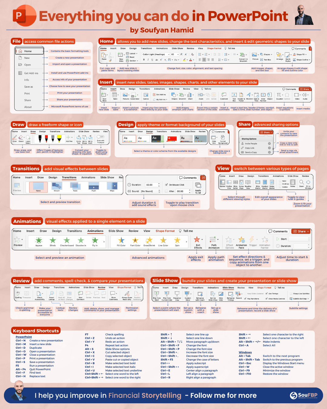 So let's deep dive on all the tools and features available in PowerPoint with this cheat sheet downloadable at no cost