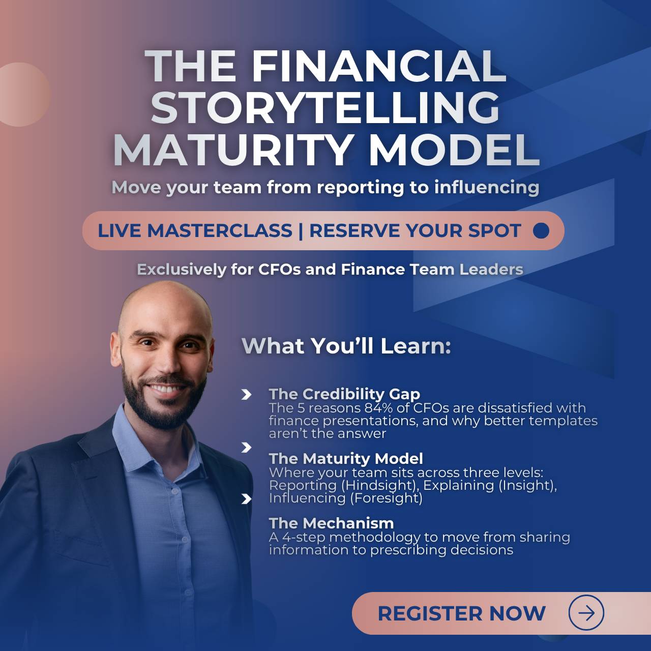 π¦The 3 levels of FP&A leadershipWhen I talk about levels, I mean something specific: where you actually spend your time on a normal week, whatever your job description says you should be. Getting promoted to Head of FP&A is real. But the work often changes very little. More meetings, more pressure, same type of thinking: you are doing more of what you already did, with a bigger title and less time to do it well. You could think personality changes that, but my view is that it was simply never shown to us: most FP&A professionals have never had these levels described clearly enough to feel like a genuine choice. Let's dig into that Level 1 β the operatorYour value comes from what you personally produce: the reporting, the models and the variances. You are the one finding the error at 11pm before the board pack goes out. Most FP&A careers start here but too many stay here, because Level 1 offers something higher levels do not: a clear sense of completion. And humanly, we love that feeling because it is real, and it is easy to organise your entire professional identity around it. Level 2 β the business partnerThis is where influence starts to replace execution. You lead forecasting conversations, challenge assumptions, translate numbers into decisions. The time horizon shifts from days to months. What surprises most people is how uncomfortable the transition feels. You don't learn new skills but you more rarely have that checkbox (β ) next to your to-do list. At Level 1, the work is done when the output is correct. At Level 2, the work is done when a decision has been made. A useful test: if your stakeholders could replace you with a well-configured dashboard and lose very little, you are probably still at Level 1. Level 3 β the strategic finance leaderThe value here is enterprise-wide. You shape capital allocation, align finance to business strategy, and influence executive decisions before they become financial facts. What makes Level 3 different is that it is less about doing and more about designing. You are building the conditions in which good decisions get made consistently, through systems, trust, and the people you have developed around you. And I have to be frank with you: you cannot hustle your way here. The move from Level 2 to Level 3 requires a track record of influence that leadership has experienced directly. That takes time. How to move between levels deliberatelyThe move will not happen by default. I have seen plenty of Level 3 titles held by people operating solidly at Level 1. Moving from Level 1 to Level 2 starts with one question: not "is this correct?" but "does this drive a decision?" You insert yourself into conversations earlier, before the numbers are final. You offer a point of view without being asked. It feels exposing at first, but don't worry: that discomfort is the signal that you're there. Moving from Level 2 to Level 3 is more structural. You need to build things that carry your thinking further than your calendar can reach. That means developing the people around you to handle conversations you used to handle yourself... ....and letting go of the execution that made you good in the first place. When I walked my friend through this, he went quiet. Then he said: "I think I have been running a very efficient Level 1 operation and calling it Level 3." One of the most honest things I have heard in a long time. And it changed the entire conversation: from whether to leave, to where he actually wanted to go next. Final Thought Most FP&A leaders do not get stuck at Level 1 because they lack ambition. They get stuck because Level 1 feels complete. The model works, the report went out, the job is done. That sense of closure is real β and it is exactly what makes it so easy to stay. The move to Level 2 is not about doing more. It is about letting "done" mean something bigger than a correct output. And Level 3 is less a destination than a practice. You reach it by building things that work without you. Hit reply and tell me: what was the moment you realised your title and your actual operating level were two different things? I read every message and reply to all of them. π Financial storytelling maturity model (live masterclass)On Wednesday 6 May at 5pm CET, and after the success of last month edition (240 registered), I am running a live masterclass for CFOs and FP&A team leaders. We will cover why 84% of CFOs are dissatisfied with what their teams present, how to map exactly where your function sits today, and the 4-step methodology that makes strategic communication repeatable. If this week's topic resonated, this is the next step. Register here: The Financial Storytelling Maturity Model masterclassβ That's a wrap for this week See you next week!β P.S. After 17 years in FP&A, Consulting and Leadership, Iβve coached and trained finance teams across industries, from consulting and manufacturing to tech, media, and global logistics. If you want to sharpen your own storytelling skills or bring this work into your team, here are a 3 ways can work together: